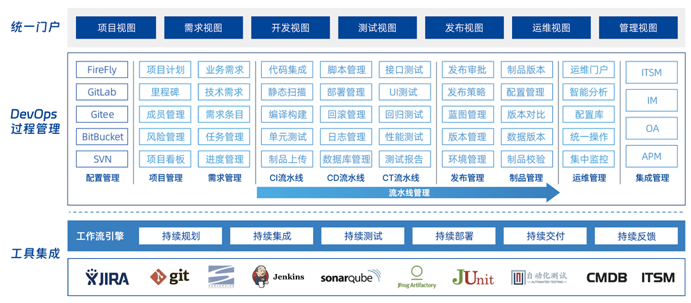 面向企業軟件開發、測試及部署全過程的一站式持續交付平臺,打通軟件交付過程流水線,構建完整的開發、測試、交付、反饋工具鏈,通過自動化的代碼構建、審查、部署及度量,提升軟件交付質量,規范軟件交付過程,加速軟件交付上線。