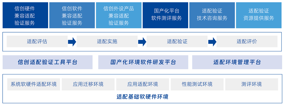 神州信息信創適配驗證服務,基于信創適配驗證實驗室,建設基于多種技術路線的適配測試平臺和應用遷移平臺。提供從自主創新系統軟硬件產品的適配到應用軟件的遷移、適配、研發、測試的全流程服務。包括硬件兼容適配驗證服務、軟件適配兼容驗證服務、外設產品適配兼容驗證服務、國產化平臺軟件測評服務、適配驗證技術咨詢服務、適配驗證資源提供服務。