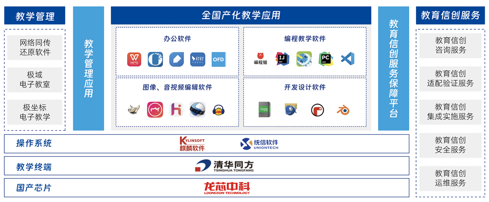 • 從軟硬件到服務一體化整體信創教育解決方案。