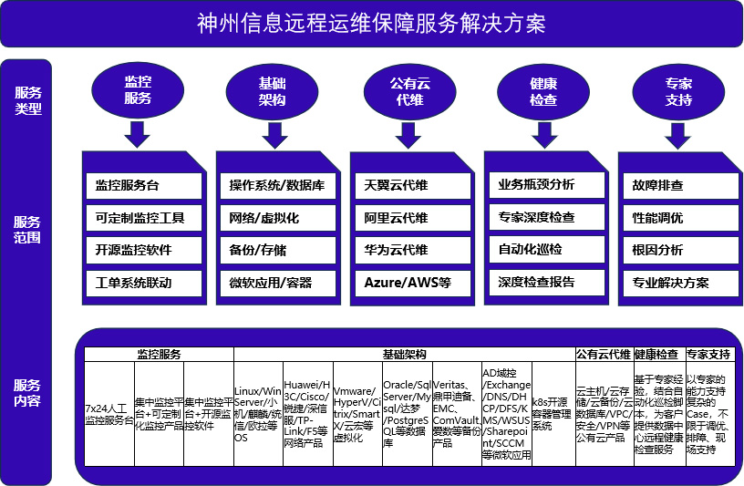 依托7×24小時智能監(jiān)控中心、專業(yè)化運(yùn)維管理平臺及資深級技術(shù)專家團(tuán)隊,構(gòu)建三位一體的遠(yuǎn)程運(yùn)維服務(wù)體系,提供包括對公有云、私有云、機(jī)房、網(wǎng)絡(luò)、服務(wù)器、操作系統(tǒng)、存儲、備份、數(shù)據(jù)庫、中間件、應(yīng)用、安全等ICT基礎(chǔ)設(shè)施的遠(yuǎn)程保障服務(wù)。為客戶數(shù)字化轉(zhuǎn)型、人工智能、云計算、物聯(lián)網(wǎng)、區(qū)塊鏈、數(shù)字資產(chǎn)等前沿技術(shù)領(lǐng)域保駕護(hù)航,驅(qū)動客戶數(shù)字創(chuàng)新進(jìn)程。