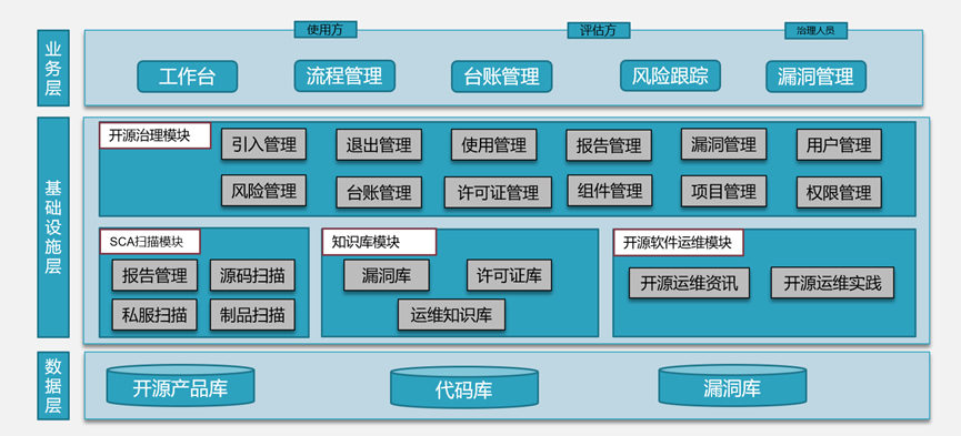 包括漏洞管理、許可證管理、開源產品資訊管理、開源產品運維實踐管理,主要爬取主流漏洞網站、主流許可證信息、開源咨詢信息以及主流開源產品運維實踐,清洗加工、實時監控、智能預警、運維監控和集中分析。