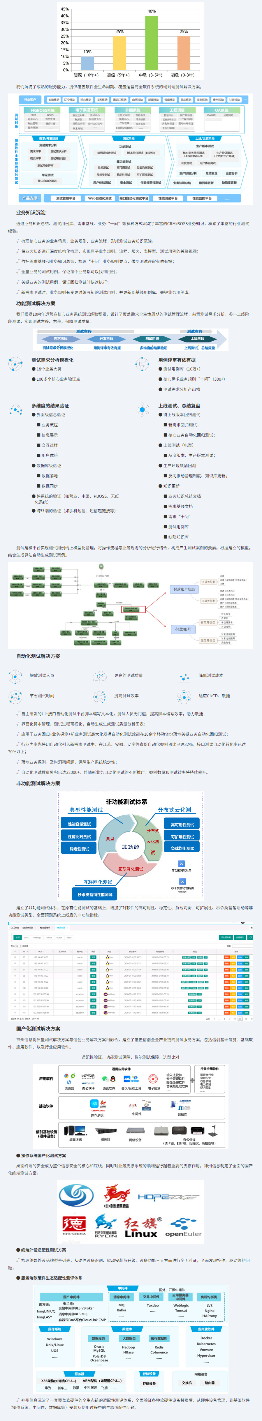 本方案為運(yùn)營(yíng)商行業(yè)業(yè)務(wù)系統(tǒng)體系下的測(cè)試解決方案,具備成熟的服務(wù)體系,專注于為運(yùn)營(yíng)商行業(yè)提供全面的軟件測(cè)試服務(wù)。我們擁有18年的測(cè)試知識(shí)經(jīng)驗(yàn)積累,在全國(guó)范圍內(nèi)建立了強(qiáng)大的測(cè)試團(tuán)隊(duì),擁有500+的運(yùn)營(yíng)商行業(yè)測(cè)試技術(shù)人才儲(chǔ)備。