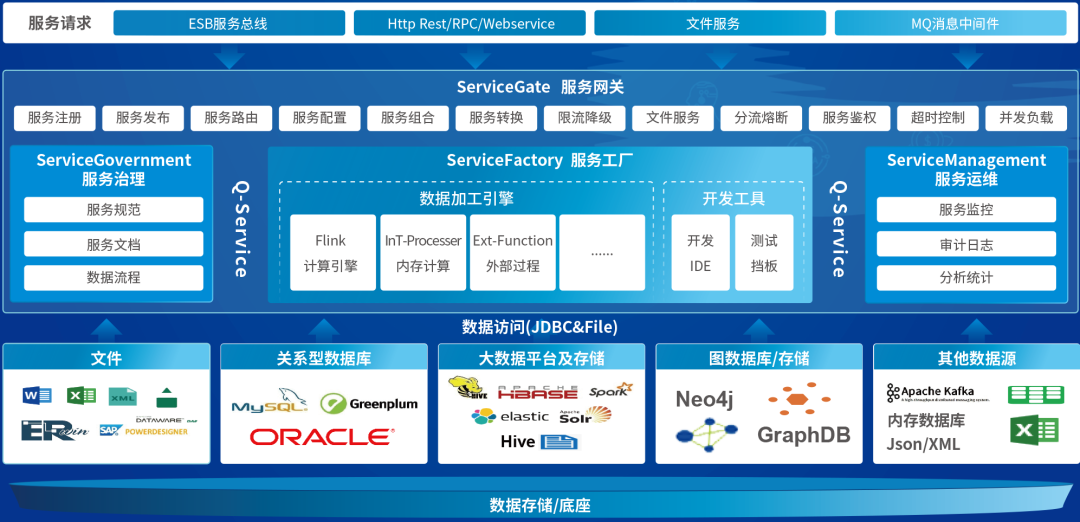 通過數據服務平臺,打破端對端的數據開發模式和緊密耦合關系,降低應用對數據依賴,確保數據安全,屏蔽技術。