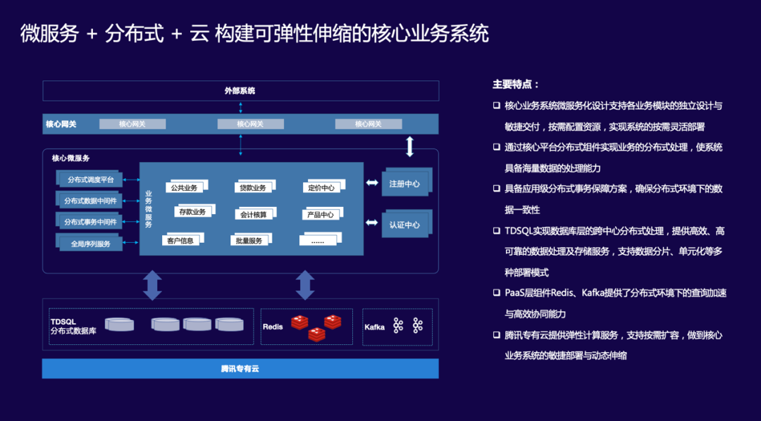 6月24日,基于國(guó)內(nèi)銀行對(duì)以云為承載的全棧國(guó)產(chǎn)化IT系統(tǒng)的需求,騰訊云攜手神州信息正式推出了“金融分布式核心”聯(lián)合解決方案。雙方采用開放平臺(tái)技術(shù)——核心平臺(tái)+云平臺(tái)實(shí)現(xiàn)業(yè)務(wù)的分布式處理、敏捷部署和動(dòng)態(tài)伸縮,同時(shí)推動(dòng)國(guó)產(chǎn)數(shù)據(jù)庫(kù)的金融全場(chǎng)景落地。在幫助銀行核心上云的同時(shí),更利用核心系統(tǒng)云原生特性,滿足多地多中心、跨區(qū)容災(zāi)、HTAP等先進(jìn)性要求,實(shí)現(xiàn)銀行核心業(yè)務(wù)系統(tǒng)的安全可控。