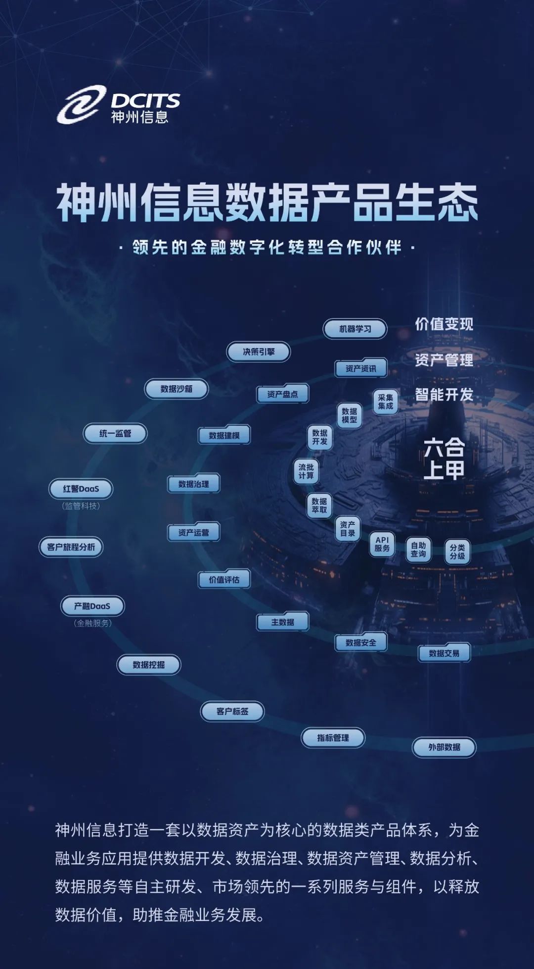 黃萬忠表示上下四方謂之“六合”,一等神兵謂之“上甲”,神州信息希望給市場一個(gè)關(guān)于數(shù)據(jù)資產(chǎn)價(jià)值發(fā)揮的實(shí)用工具。同時(shí)還重點(diǎn)介紹了利用六合上甲開發(fā)的幾個(gè)數(shù)據(jù)資產(chǎn)價(jià)值發(fā)揮的場景。