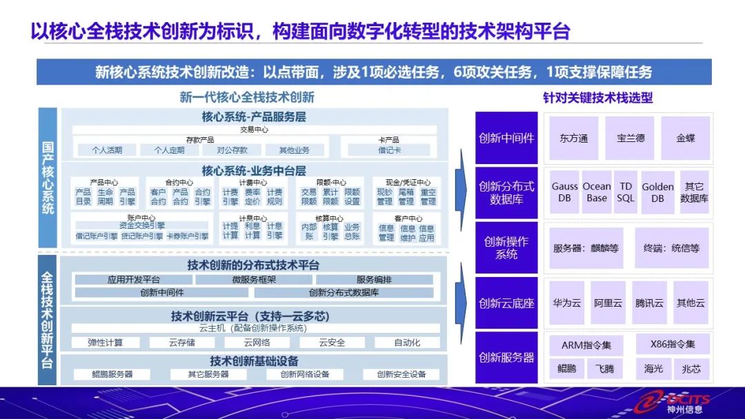 在監(jiān)管側(cè)、產(chǎn)業(yè)側(cè)、技術(shù)側(cè)的多方促進(jìn)下,核心下移已成為突破關(guān)鍵技術(shù)能力的必選題。金融行業(yè)多通過分布式技術(shù)平臺進(jìn)行核心系統(tǒng)升級,神州信息推出的組件化云原生金融技術(shù)平臺“九天攬?jiān)?rdquo;,是一套基于主流分布式技術(shù)架構(gòu)松耦合的微服務(wù)核心系統(tǒng),可支持高并發(fā)、高可用,云原生、單元化及多云環(huán)境部署,通過技術(shù)架構(gòu)和應(yīng)用架構(gòu)升級,賦能核心系統(tǒng)全面升級。未來神州信息將以全新核心全棧技術(shù)創(chuàng)新為標(biāo)識,構(gòu)建面向數(shù)字化轉(zhuǎn)型的技術(shù)架構(gòu)平臺。