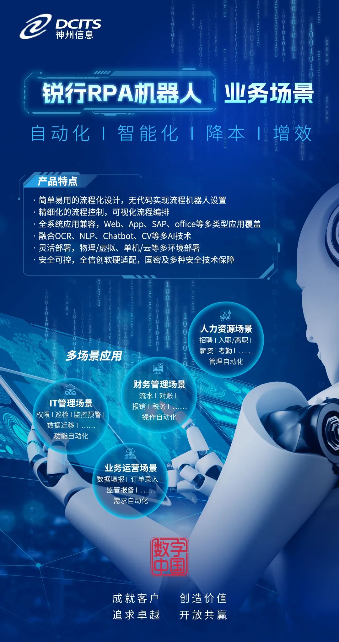 通過RPA流程自動化,神州信息幫助該證券公司成功實現了,多個關鍵業務領域、多系統間,海量交互數據的查詢和復雜報表的自動化處理,極大提升客戶業務處理效率。
