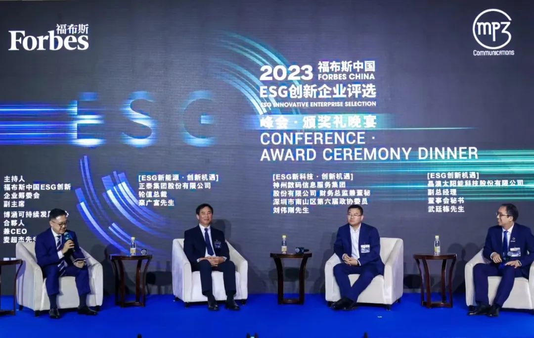 在本次峰會的ESG 創新機遇專題論壇上,神州信息財務總監兼董秘劉偉剛與福布斯中國ESG創新企業籌委會副主席麥超杰、正泰集團股份有限公司輪值總裁欒廣富、晶澳太陽能科技股份有限公司副總經理武延棟等嘉賓一起對可持續發展與數字化及企業技術創新之間的關系進行深入探討。