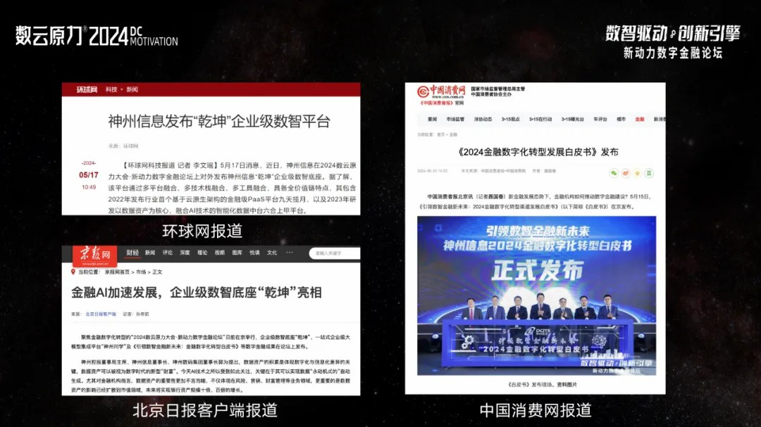 數(shù)字金融重磅成果《引領(lǐng)數(shù)智金融新未來:金融數(shù)字化轉(zhuǎn)型渠道發(fā)展白皮書》、神州信息企業(yè)級數(shù)智底座“乾坤”、數(shù)字金融重磅成果“神州問學”等產(chǎn)品的發(fā)布,更是將大會的“含金量”直接拉滿。