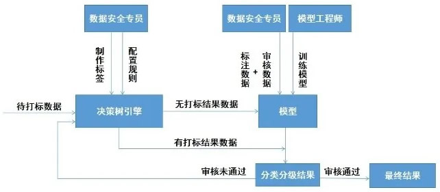 該系統具有“系統自動化分類分級流程”、“決策樹引擎”和“機器學習模型”三大特點,在實現分類分級自動化,提升效率的同時,進一步與行內流程緊密結合,實現降本增效。