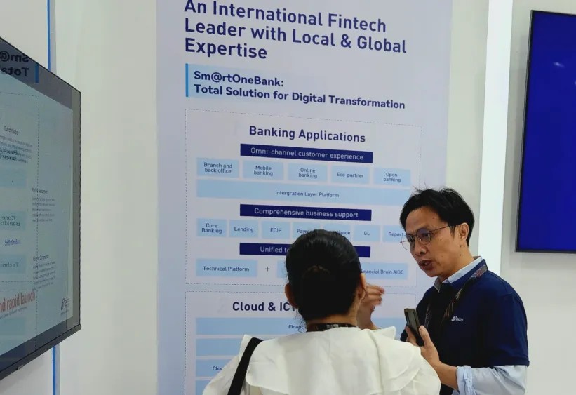在為期三天展會中,神州信息成功吸引來自東南亞、中東以及日韓等地區100余家金融機構客戶和科技伙伴到訪參觀,各企業代表與神州信息海外團隊展開交流,眾多銀行對數字化銀行解決方案Sm@rtOneBank表達了濃厚興趣。Sm@rtOneBank結合海外金融機構轉型需要,提供“開箱即用”一系列金融解決方案,全面賦能金融機構數字化轉型之旅。