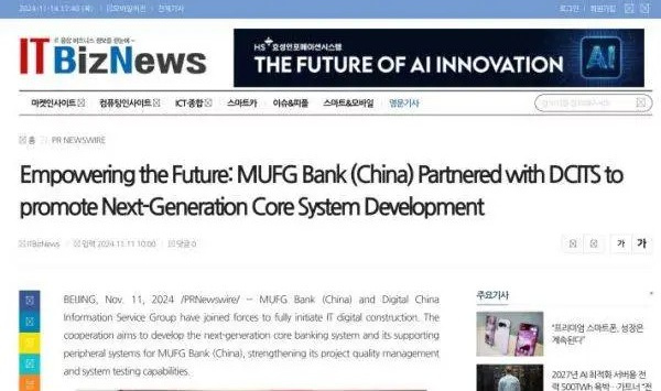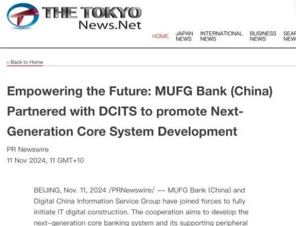神州信息成功與三菱日聯銀行(中國)就新一代核心系統達成戰略合作。繼匯豐中國后,再次收獲國際金融數字化轉型案例,全面助力出海。